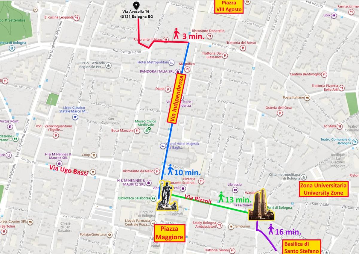 La struttura si trova a 3 minuti a piedi da Via Indipendenza (la via principale del Centro della città), 10 minuti da Piazza Maggiore e 11 minuti a piedi dalla Stazione Centrale.